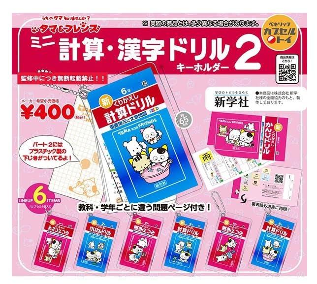 タマ&フレンズミニ計算・漢字ドリルキーホルダー2 全6種セット フルコンプ コンプリートセット ガチャ ガチャガチャ カプセルトイ パート2にはプラスチック製の下じきがついてくるよ 新学社様全面監修の、学年ごとに違う本物に忠実リアルな問題ページがついています! 裏表紙も忠実に再現! ■かんじドリル1年 ■けいさんドリル2年 ■漢字ドリル3年 ■計算ドリル4年 ■漢字ドリル5年 ■計算ドリル6年