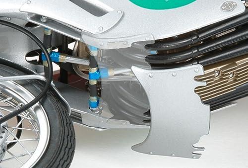 【 模型要目 】●1/12スケールのプラスチックモデル組み立てキットです。●全長166mm、全幅43mm。●ホイールはリムと繊細な表情を見せるスポークを別部品で構成したつや消しメッキのABS樹脂製。●空冷並列6気筒エンジンは、パーツの