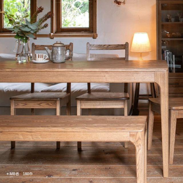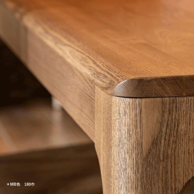 タモ無垢材の個性豊かな木目が楽しめるダイニングテーブル(ナチュラル/ミドルブラウン)