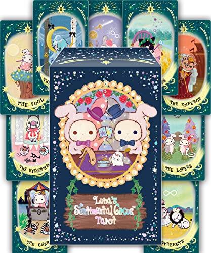 ルナファクトリーがサンエックスのキャラクターをタロットに採用、 その名もルナズセンチメンタルサーカスタロットがついに発売されました。 センチメンタルサーカスの世界観とタロットの世界が見事に融合し、とても神秘的で可愛いタロットが生まれました。 ライダー版タロットカードに準拠しているので初心者から上級者まで使うことができ、カードコレクターの方にも楽しんでいただける仕様になっております。 78枚のフルデッキで、大アルカナのみならず小アルカナも一枚一枚丁寧に仕上げているので、何度見ても新しい発見がありリーディングの際にどんどんインスピレーションが生まれてきます。 今までタロットカードは怖い、占いは怪しいと思っていた方も優しく可愛いこのルナズセンチメンタルサーカスタロットならばすんなりと占いの世界に入ることができます。 辛い時、悲しい時、このカードはいつもあなたに寄り添い包み込んでくれるでしょう。 初めての方もタロットカードに慣れた方も、このルナズセンチメンタルサーカスタロットで新しい世界を楽しんでみませんか?