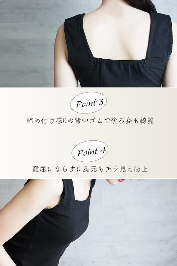 「下着も胸チラも隠せるインナータンクトップ」肩が出るデザインやレースなどの透け感のある服を着る際、下着の紐が出てしまう…なんて時に、これを着ればブラ紐が見えることはありません。