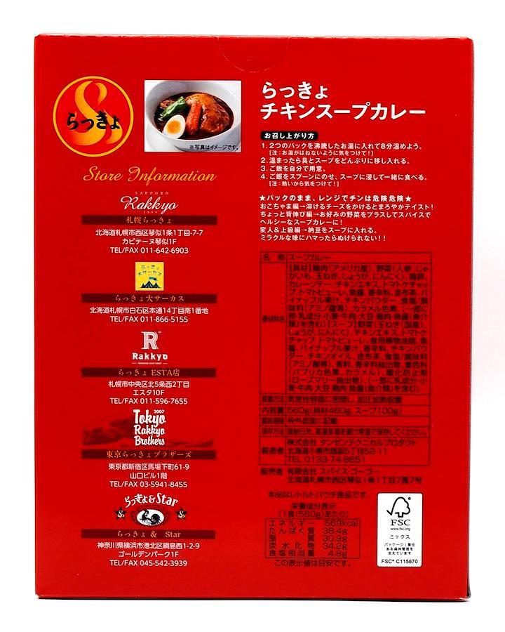 『レトルトスープカレーのベストセラー!』野菜を大量に使用した素材感ある味わいの調和のとれた中にほどよい辛味が入った絶品のスープカレーです。具材はチキンレッグ、ゆでタマゴ、人参、じゃがいもの4種です。具材と辛味ベースを別袋に分けて封入してあります。 1食あたり560g入で、レトルトスープカレーの中では最もボリュームがあります。しかも美味しいので飽きません。 【原材料】鶏肉(アメリカ産)、野菜(人参、じゃがいも、玉ねぎ、しょうが、にんにく)、鶏卵、カレーソテー、チキンエキス、トマトケチャップ、トマトピューレ、魚醤、香辛料、昆布茶、パイナップル果汁、チキンパウダー、食塩/調味料(アミノ酸等)、カラメル色素、(一部に卵・乳成分・小麦・牛肉・大豆・鶏肉・魚醤(魚介類)を含む)【スープ】野菜(玉ねぎ(国産)、しょうが、にんにく)、チキンエキス、トマトケチャップ、トマトピューレ、食用植物油脂、魚醤、パイナップル果汁、香辛料、チキンパウダー、チキンオイル、昆布茶、食塩/調味料(アミノ酸等)、香料、香辛料抽出物、着色料(パプリカ色素、カラメル)、酸化防止剤(ローズマリー抽出物)、(一部に乳製品・小麦・牛肉・大豆・鶏肉・魚醤(魚介類)を含む) 【栄養成分表示(1食560gあたり)】エネルギー569kcal/たんぱく質 38.4g/脂質 30.9g/炭水化物 34.2g/食塩相当量 4.8g 【賞味期限】製造から1年(実際の残存賞味期限は各店舗の在庫の増減と仕入れのタイミングにより変動致します。) 【保管方法】直射日光と高温多湿を避け、常温で保管して下さい。【重要】メーカーによる商品リニューアルに伴いパッケージ(内容量も含む)変更が行われた場合、新パッケージでお届け致します事ご了承願います。
