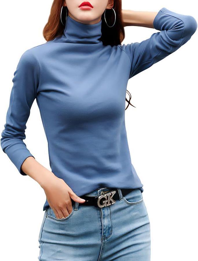 「着回し力抜群のタートルネックカットソー」どんなスタイルにもマッチする定番のハイネックトップス。
