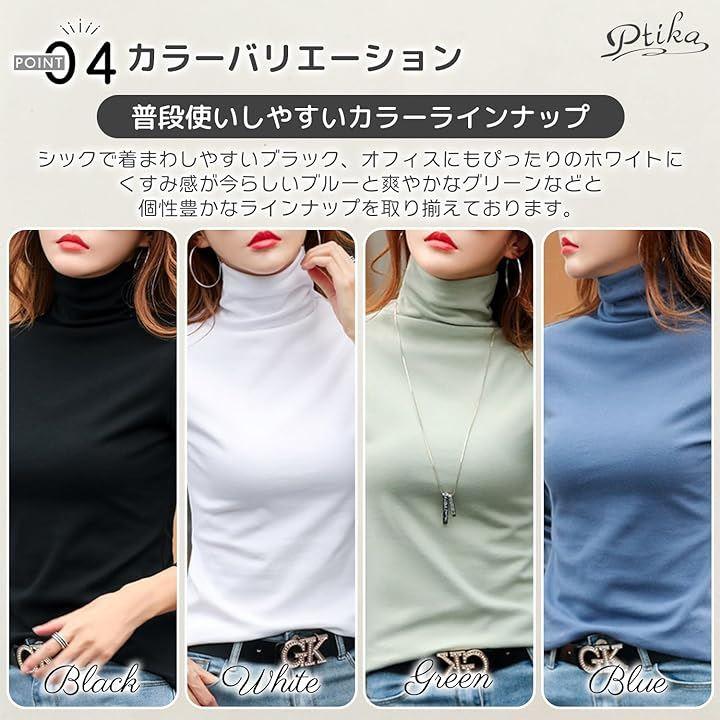 タートルネックデザインで小顔効果も抜群。シンプルなのでネックレスなど小物との相性も抜群です。