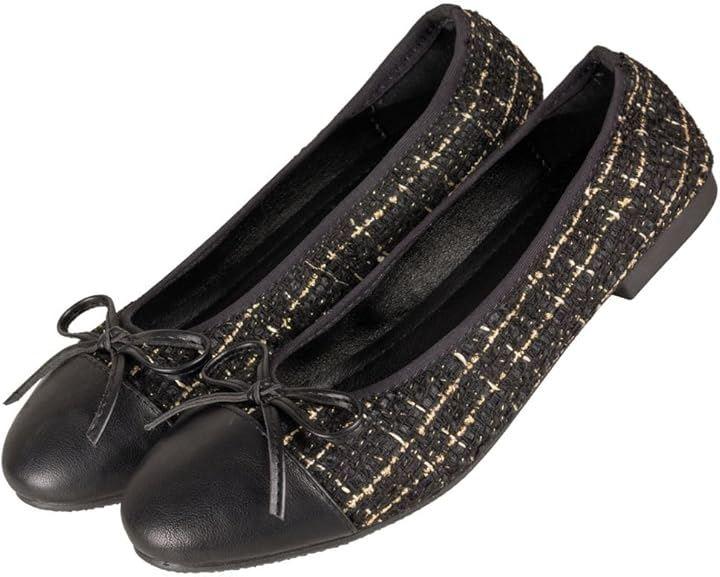 さらにラメを織り込み、さりげなく華やかさをプラスしたフラットシューズです。