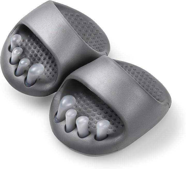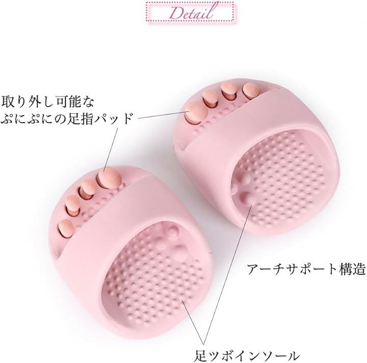 「凝り固まった足先もほぐす」5本指を入れるプニュプニュの足指パッドが付いているため、足先をほぐし、しっかりと足の位置も固定しくれます。