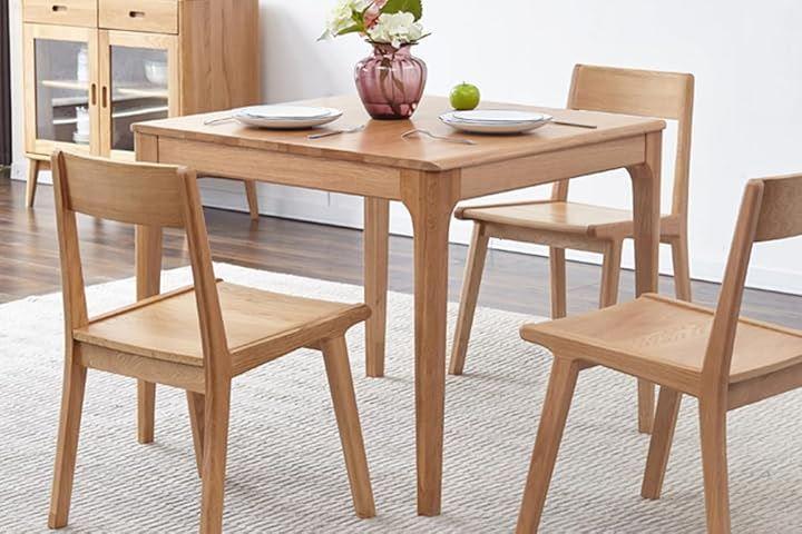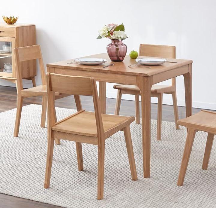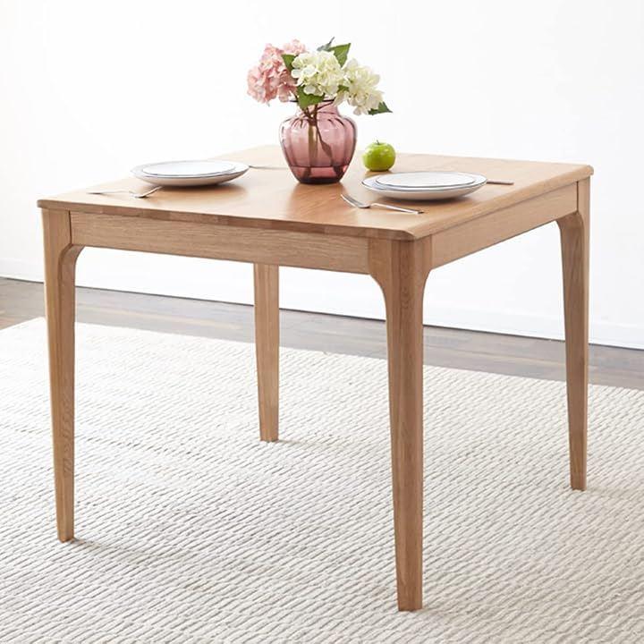 「製品仕様」寸法:奥行70 x 幅70 x 高さ75 cm「天板の形状」正方形、「素材」アメリカから輸入した上質なオーク無垢材、ベニヤなし、MDFなし「表面の仕上げ」ニトロセルロースラッカー「お客様組み立て商品」8本のネジを締めるだけで、力の弱い女性でも簡単に済ませます。