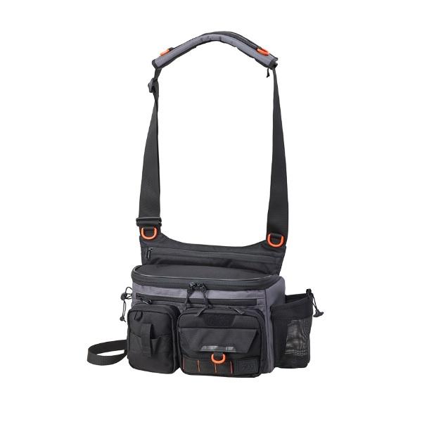 高次元の機能性を凝縮したハイパフォーマンスモデル。本体内部が見やすく、出し入れし易い「大開口U字型ファスナー」。ひんぱんに使用するルアーを収納し取り出しラクラク、「ルアーマット」付きフロントポケット。小物の収納にぴったりなスリットポケット。コンパクトな「新構造ロッドホルダー」装備。「針が引っ掛かりにくい樹脂製メッシュを使用したペットボトルホルダー」(600ml程度まで)。プライヤーホルダー、Dリング、ベルトループ装備。取り外しのできる大型ショルダーパッド付き。すっきり収納できるレインカバー内蔵(完全防水ではありません)。バッグのブラつきを抑えるウエスト補助ベルト。蒸れを抑えるメッシュパッド背面。 本体外寸:約12×33×20cm 素材:ポリエステル ※実物と色が違って見える場合があります。あらかじめご了承下さい。