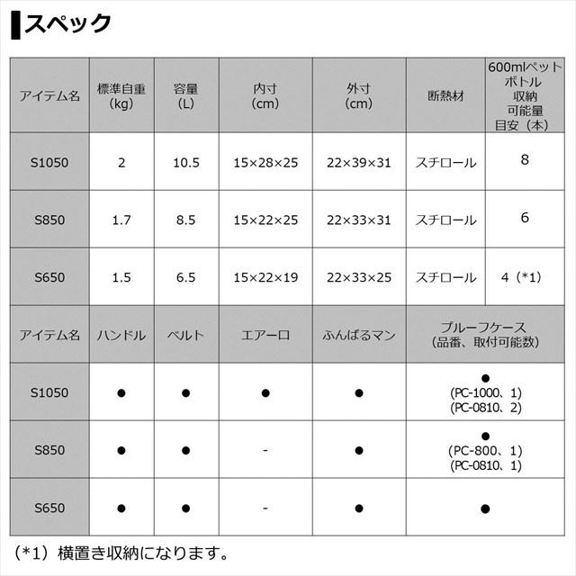 自重:1.5kg 容量:6.5L 内寸:15×22×19cm 外寸:22×33×25cm スポーツやアウトドアにピッタリ!ペットボトルや食べ物にも最適な小型クーラー ●高保冷のスチロール仕様 ●サンドイッチやオニギリを濡らさず収納できるプルーフケース付 ●ペットボトル600ml最大4本 ●持ちやすいロングハンドルと肩ベルトが標準装備 ●取り外し可能でお手入れ簡単な両開き上フタ ●安心して座れる頑丈ボディ、上フタが平らで座りやすい ●底面には滑りにくいふんばるマン付き ●自転車の前カゴに入れやすいサイズ設計※掲載している商品の画像は代表画像を表示しています。また実物と色が違って見える場合があります。あらかじめご了承下さい。