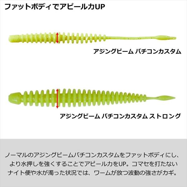 ハイアピールFATボディのSTRONGバージョンに2.8inchを追加。高密度リブとファットボディが広範囲の魚にアピールしアジを寄せる!■ボディ軸を細くしアジの吸い込みに対応。しっかりとボディが折れ曲がることでスムーズにアジの口に吸い込まれる構造。■アミノ酸特殊誘引剤「アミノX」とシュリンプパウダーをふんだんに配合し集魚力が鍵になるバチコンアジングに最適な仕様。■一般的なワーム素材として使用される素材「塩ビ」を採用することで揺れる船上でもジグヘッドにセットしやすい! サイズ:2.8インチ 素材:塩ビ 入数:10 ※実物と色が違って見える場合があります。あらかじめご了承下さい。