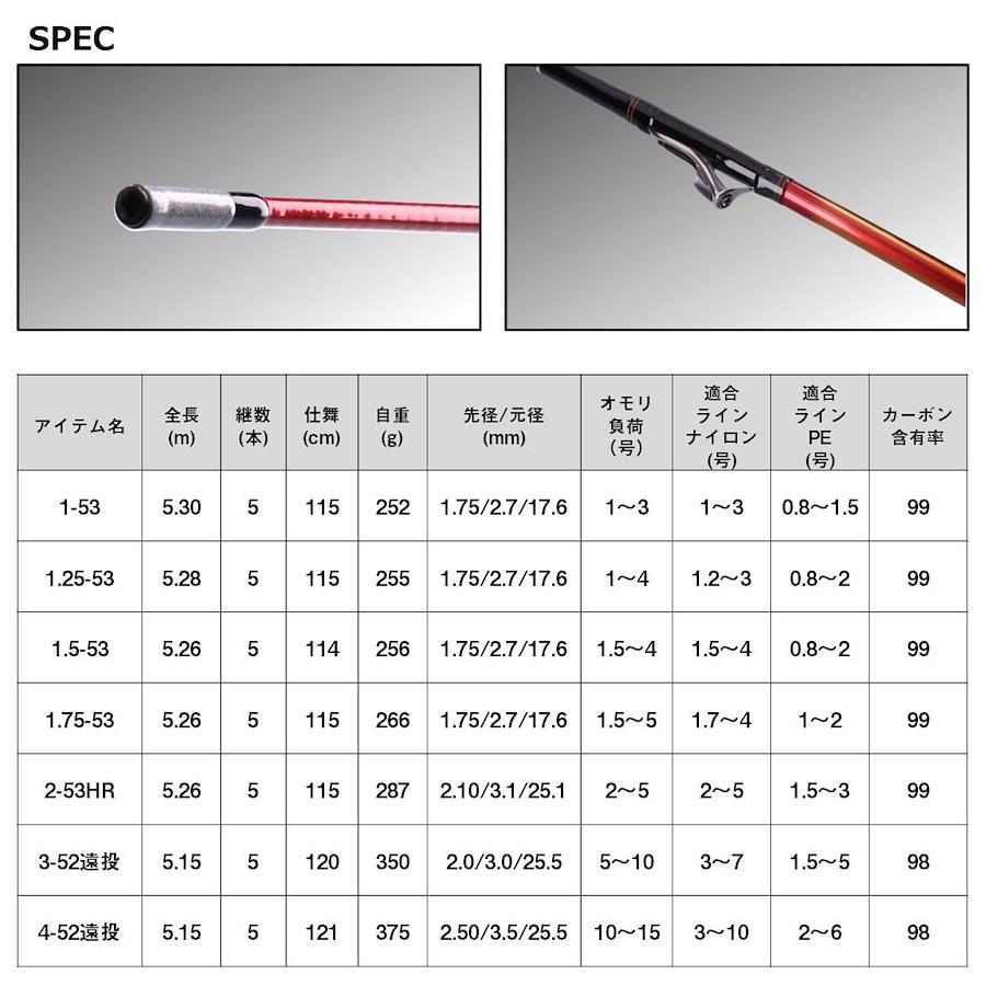 細身化が切り開くインターラインの新境地【自重(g)】: 256【全長(m)】: 5.26【継数】: 5【仕舞(cm)】: 114【適合道糸ナイロン(号)】: 1.5~4【錘負荷(号)】: 1.5~4【先径&元径(mm)】: 1.75/2.7/17.6【免責事項】※メーカーのリニューアルに伴い仕様・カラー等が予告無く変更になる場合がございます。新パッケージでお届け致します事ご了承願います。