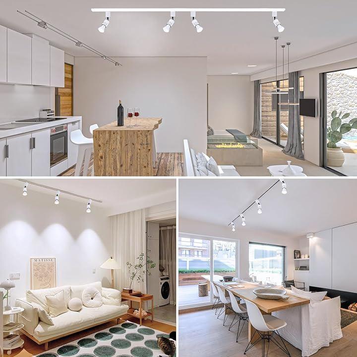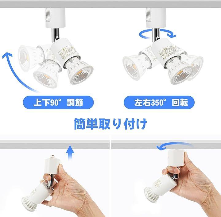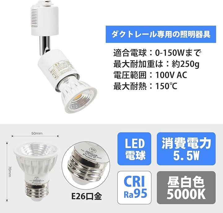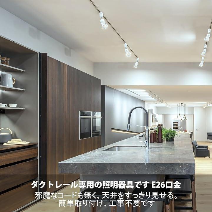 1、電球付き:5.5W E26 LED電球(6個)+ダクトレール用器具(6個)、5.5W(60W 相当)、全光束550lm、ビーム角度 90°、明るさの演色性Ra95、昼白色5000K照明 おしゃれ 照明器具。