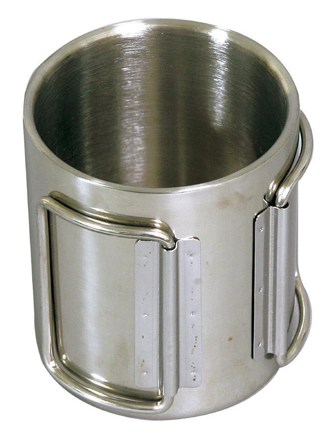定番の保温、保冷の効果がある二重構造マグカップシングルのカップに比べ熱い飲み物等を入れた際に持った時に手が熱くなりにくいのが特徴です。取っ手はフォールディングタイプの為、収納しやすい構造になっています。直火にかけることはできません。