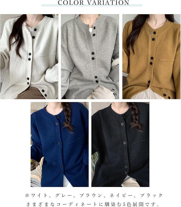 どの色を選んでも、おしゃれで着まわしやすいカーディガンとして活躍すること間違いなしです。
