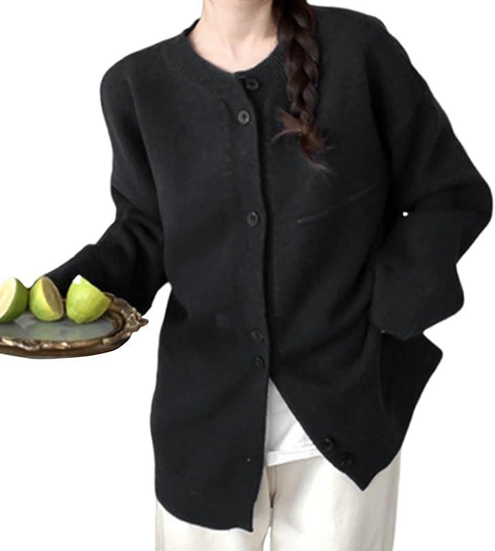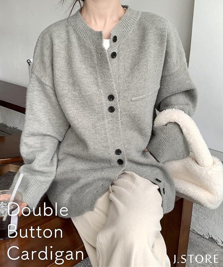 ダブルボタン ルーズ カーディガン レディース 秋冬 オフィス ゆったり きれいめ 春 暖かい 防寒 トップス 長袖コート ユッタリ アウター カジュアル 冬服レディースコート ニットレディース秋冬 あったか キレイめ 4A4A-J19-BKL