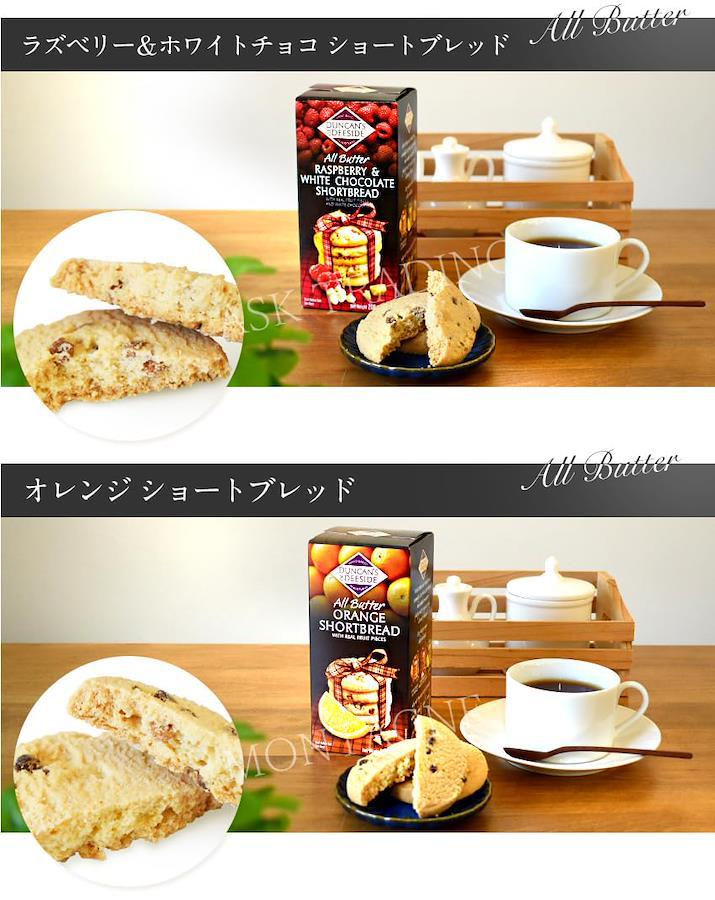 ショートブレッドの本場スコットランド(イギリス)の大手スーパーで売上1位を誇るダンカンのショートブレッドです。マーガリンを使用せず、オールバターで丁寧に焼き上げられています。 小麦粉に対するバターの比率が高く、口の中でとろけるようなほろほろ食感が味わえます。フルーツを使ったショートブレッドは、すべて本物の果実を使用しているためフルーティーで香り高い仕上がり。仕事や家事の合間のティータイムや、お子さまのおやつにもぴったり。 たっぷり入っているのでご家族や友達同士でシェアするのもおすすめです。─ Duncan's of Deeside ─ (ダンカンズオブディーサイド) 王室ゆかりの城が多く、王族の避暑地でもあるロイヤルディーサイドの山のふもとにお店を開きました。 ダンカンさんの母エリザベスが代々受け継いだレシピでつくる美味しくて懐かしい味。 今でも家族でその伝統の味を守り続け、ショートブレッドやオートケーキをつくっています。当店では有料にてギフトラッピングをご用意。大切な人へのギフトにぴったりなお品物をスタッフが心を込めてお包み致します。食品のため返品交換はお受け致しかねます。【免責事項】メーカーによる商品リニューアルに伴いパッケージ(内容量も含む)変更が行われた場合がございます。新パッケージでお届け致します事ご了承願います。