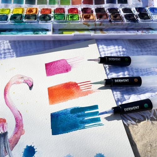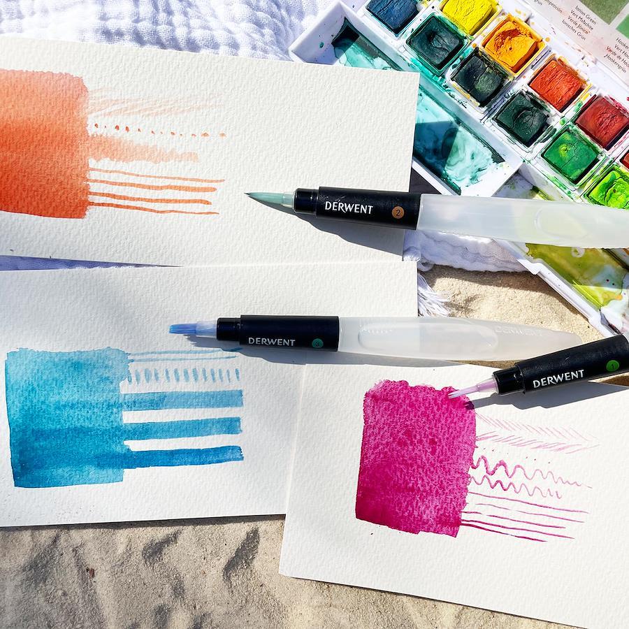 水漏れせず、詰め替え可能なポータブルのウォーターブラシは屋外で水彩画絵を楽しむのに最適です。繊維ブラシがバレル内の水を吸収し、ブラシが紙と接触するときに一定の水が出るように設計されています。またブラシを洗うのもバレルに軽い圧力を加えれば汚れた水が簡単に出て行きます。