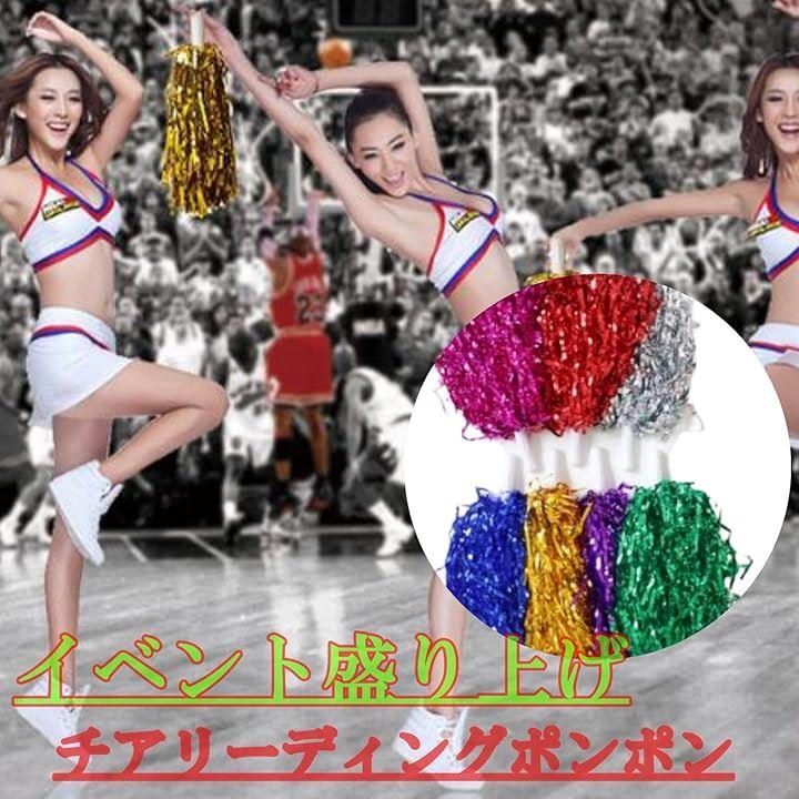 チア リーディング ポンポン 持ち手 付 7色14個 セット