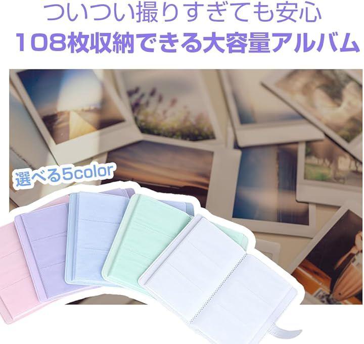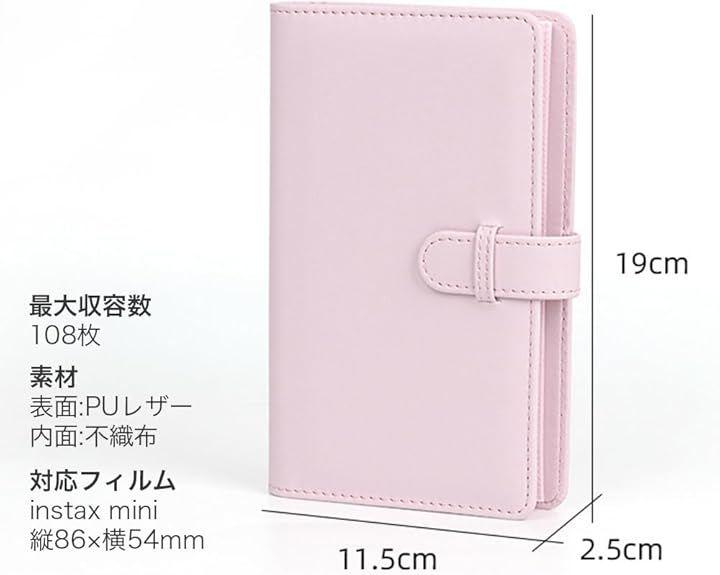 「チェキアルバム 大容量」コンパクトな手帳型ながら、instax miniフィルムを最大108枚収納可能。