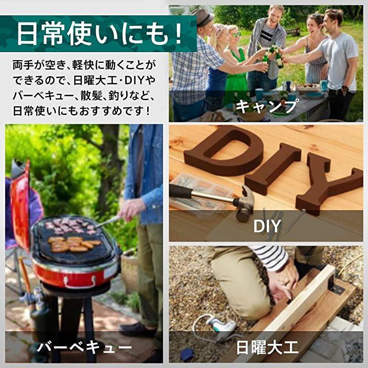 「多用途」本商品を活用いただければ両手が空き、軽快に動くことが可能なので、サバイバル用品ミリタリー用品として以外にも、本商品の機能性を活かして、大工道具日曜大工DIYバーベキュー散髪などの日常用途にもお使いいただくことが可能です。