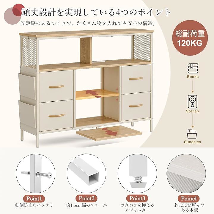 耐荷重:天板[20kg]・棚[15kg]・ 引き出し[15kg]。