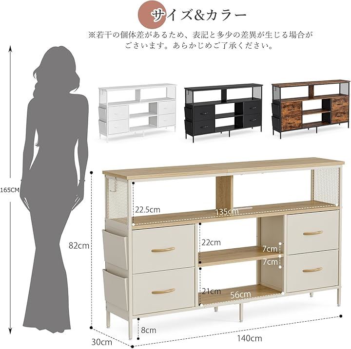 耐荷重:天板[20kg]・棚[15kg]・ 引き出し[15kg]