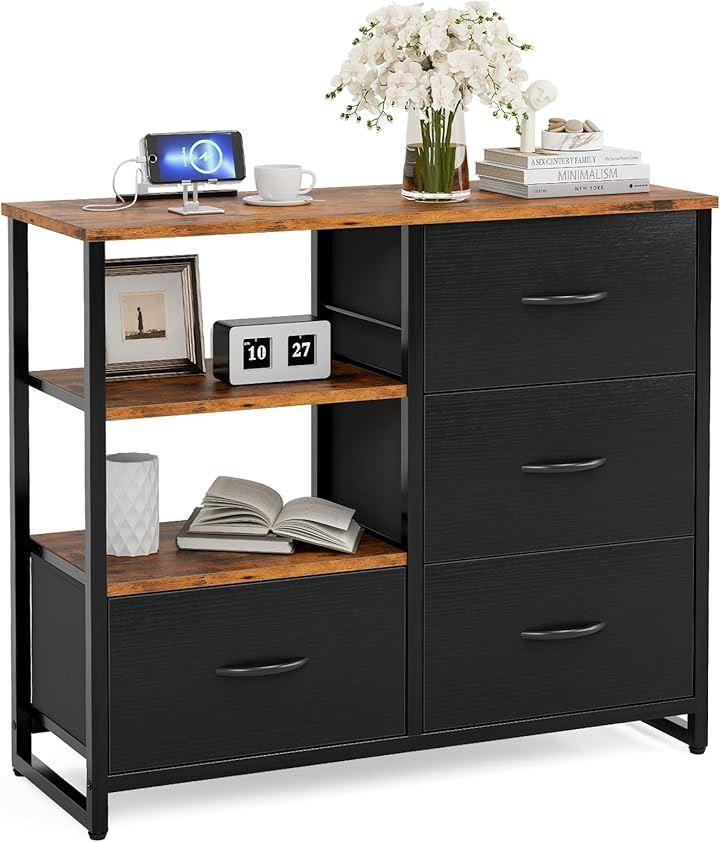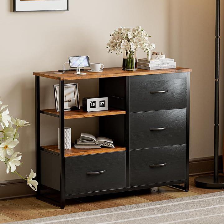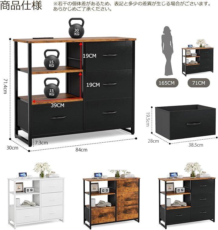 チェスト収納 タンス 棚付き 箪笥 リビング収納チェストUSBポート付き おしゃれ コンセント付き 収納ケース 引き出し 大容量 北欧 洋服タンス 布製 衣類収納 収納ボックス マルチチェス シンプル 整理タンス