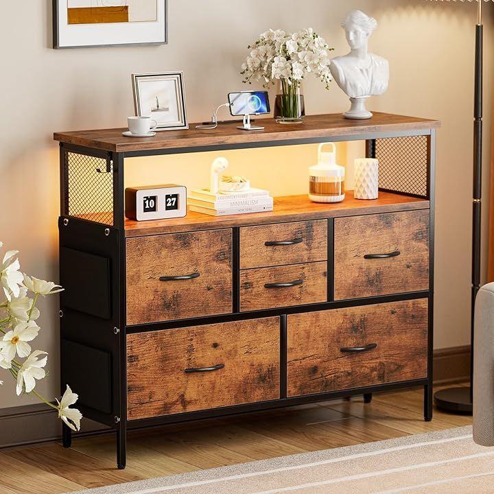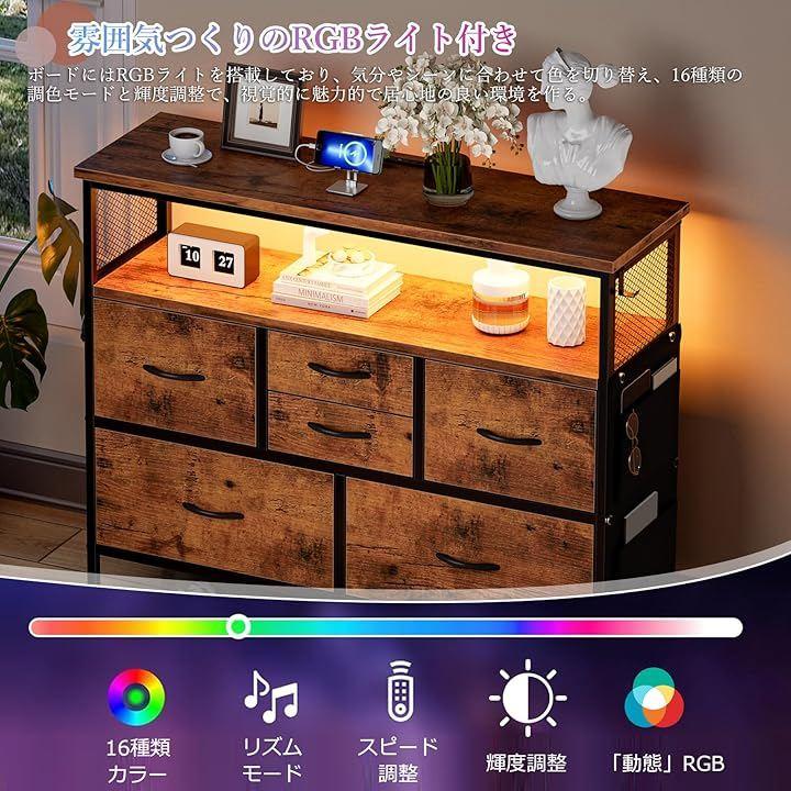 「雰囲気を彩るRGBライト付き」チェスト上部の棚ボードに内蔵されたLEDライトが、パーティーやゲームを一瞬で特別な空間に変えます。