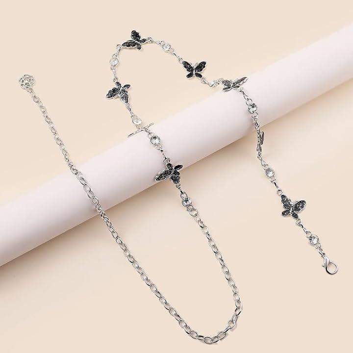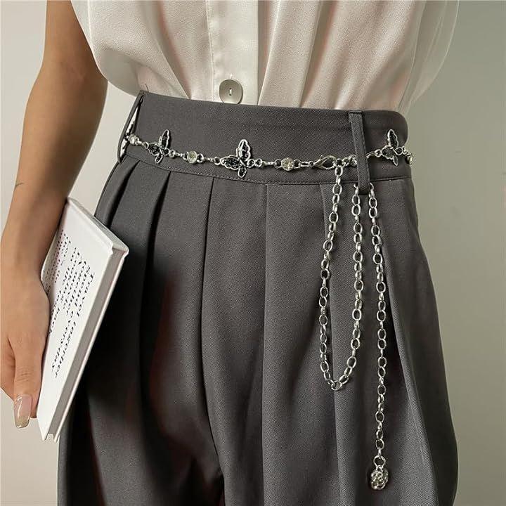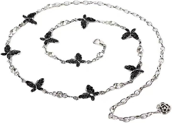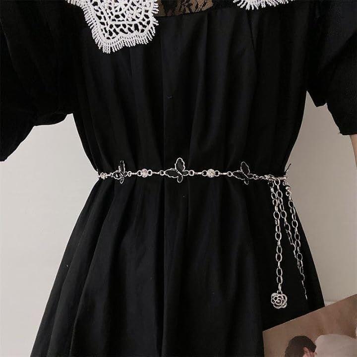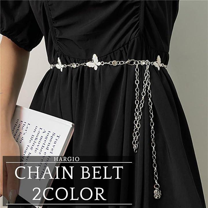 チェーンと蝶のデザインがかわいいレディースベルトです。
