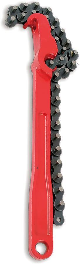 チェーンの力を利用するチェーンレンチは、様々なサイズに対応でき、オイルフィルターの交換だけでなく三角、四角の多角形など幅広い形に使用できます。