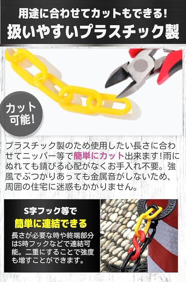 「区切りチェーン」でお困りのあなた こんな悩みありませんか? 駐車禁止など区分を区切りたい…遠くから見ても目立たせたい… お手頃で解決できる物が欲しい…欲しい色が見つからない… その悩みをスッキリ解決。 進入禁止・列などの区切りに.プラスチックチェーン。