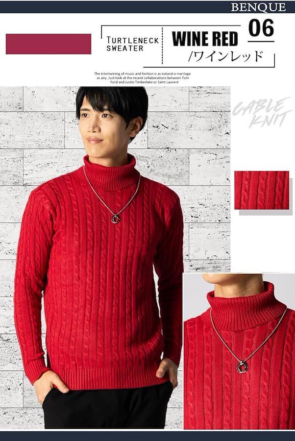「上品さとスタイリッシュさを兼ね備えた」高いデザイン性とスリムなシルエットが特徴のケーブル編みニットタートルネックセーター。