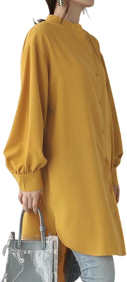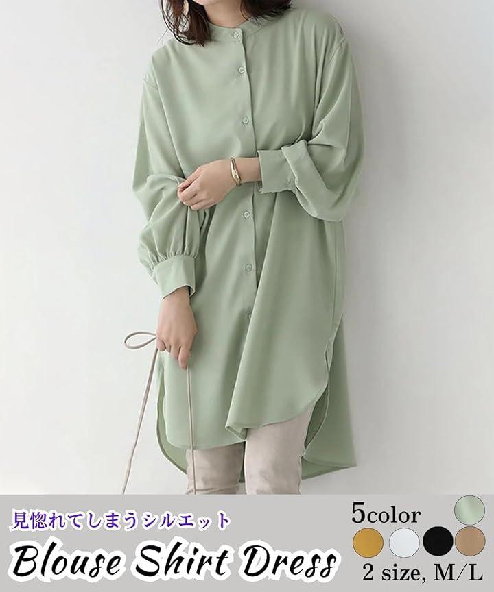 「シャツワンピース」ふんわりとしたパフスリーブの袖が魅力のレディースの長袖 チュニックワンピースです。