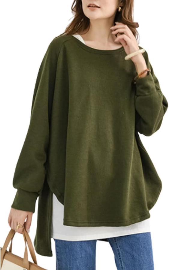 お尻が隠れるトップスとして、ゆったりとしたシルエットで、全体的に大きめに設計されています。