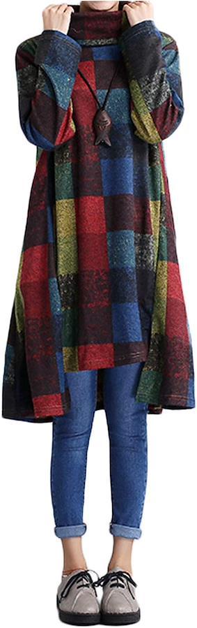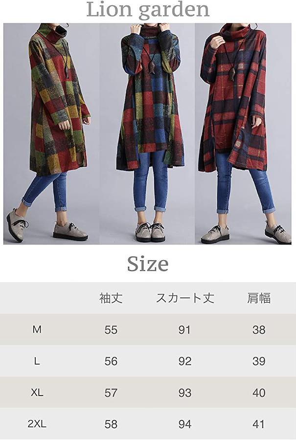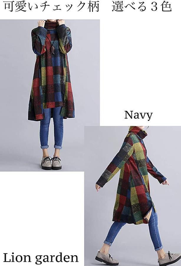 ・タートルネック&チェック柄が可愛いチュニックワンピースが登場です。