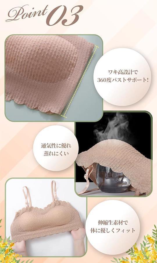 「初心者でも・着け心地いいブラ」通気性のある柔らかい質感の生地がお肌に優しくノンワイヤーだから苦しい締めつけ感を感じません。