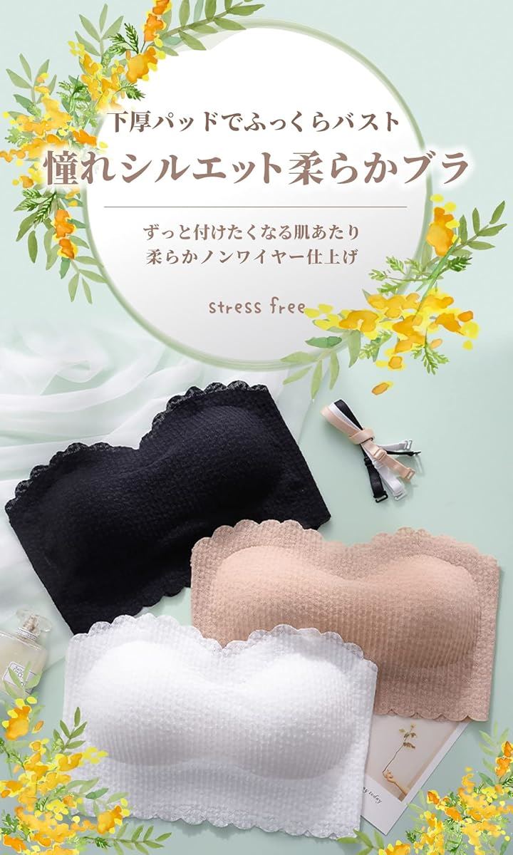 カップ付き ノンワイヤー ホックなしタイプの チューブトップ ブラ です。