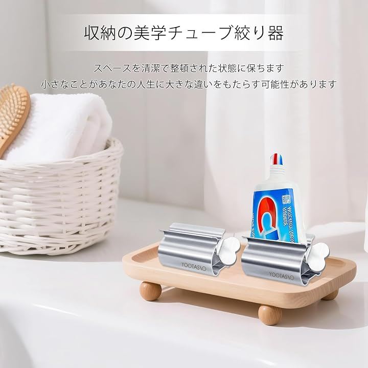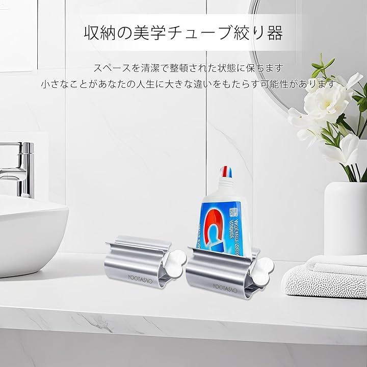 「おしゃれな・省スペース」:YOOTASIO 歯磨き粉ディスペンサーは、チューブを絞り出すだけでなく、そのままスタンドとしても使えます。