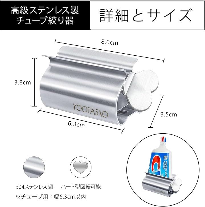 「材質」:YOOTASIOのチューブ絞り器は、SUS304ステンレス鋼を採用。