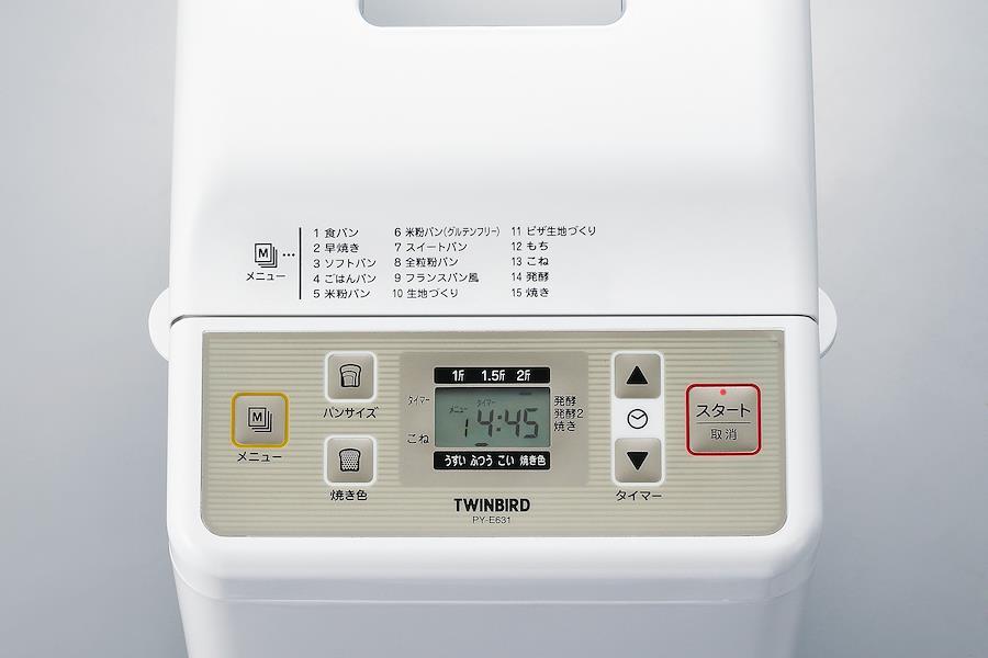 TWINBIRD 【ごはんパン/米粉パン/もちつき】モード搭載 ホームベーカリー ホワイト PY-E631W