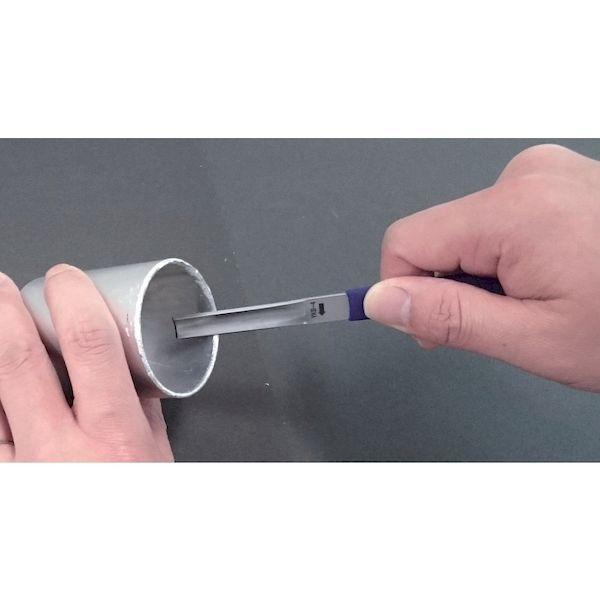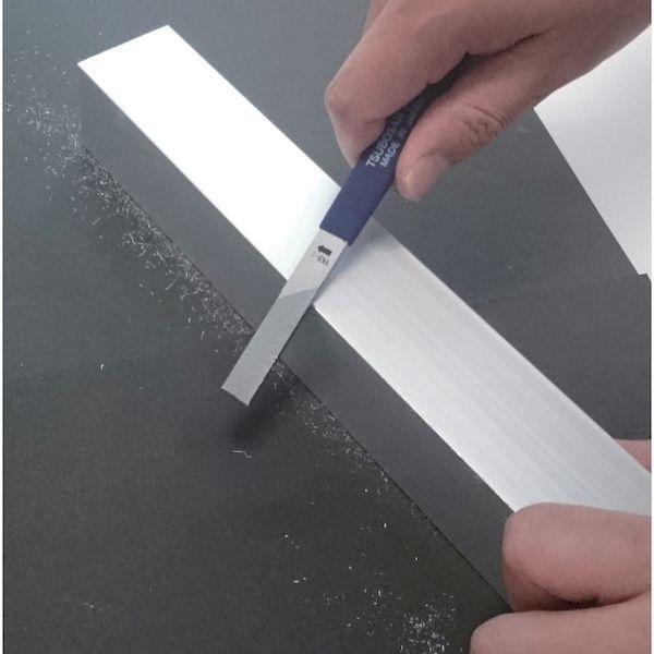 ●従来の前方に押して削るヤスリと違い、カッターナイフのように持ち、被削面に対して横に滑らせるように使用します。