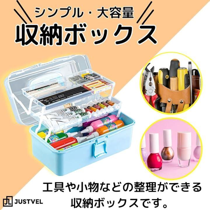 「商品仕様」180度開閉3段式ツールボックス 材質:PP カラー:ブルー、ホワイト、ピンク