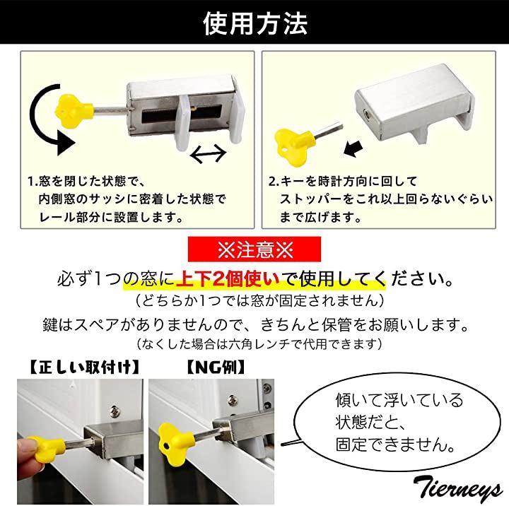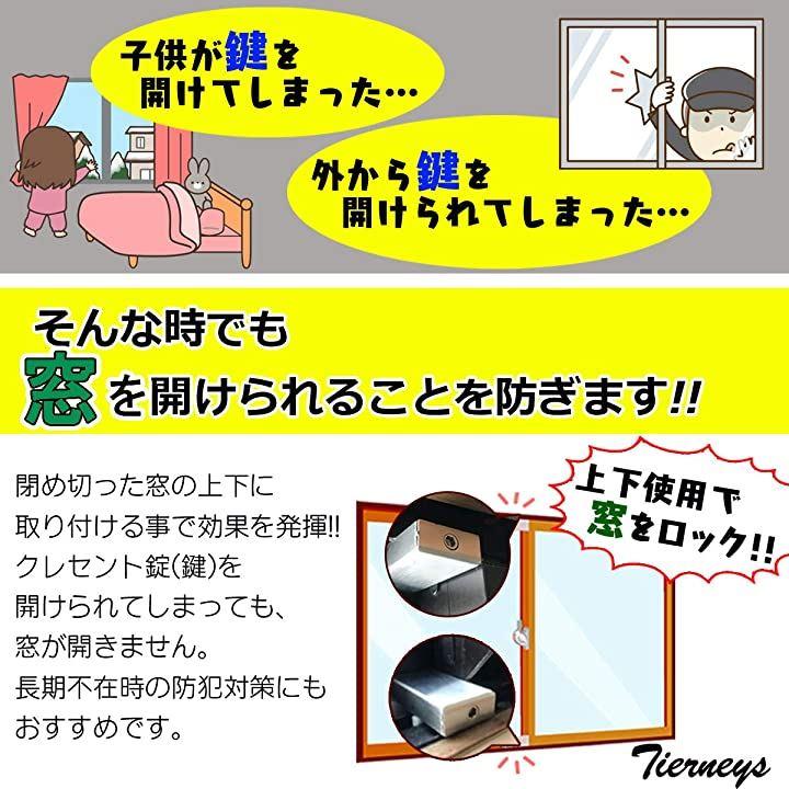 六角キーを回し、ストッパーを窓やサッシの上下に固定するだけで、女性でも簡単に設置できる窓用補助錠です。