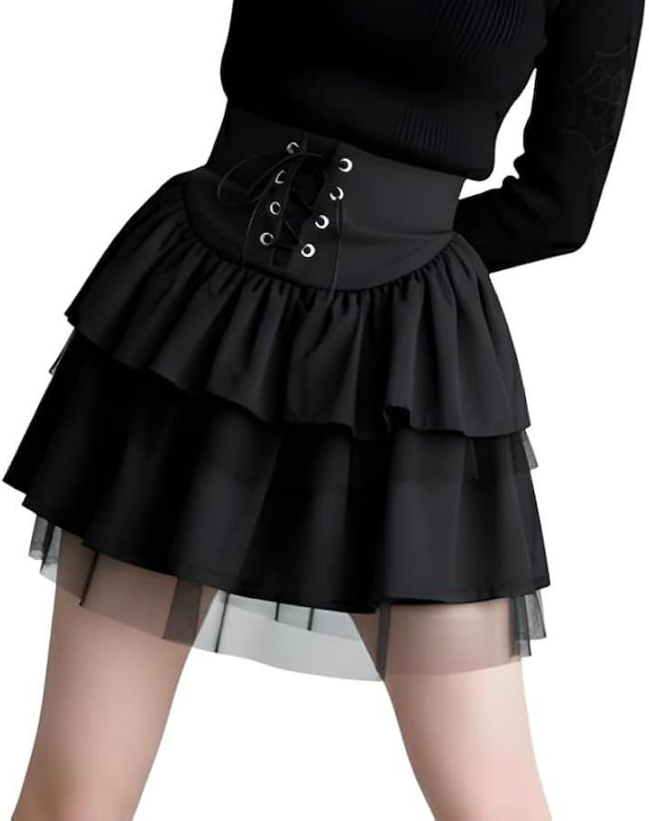 可愛さもスタイルアップも叶える。編み上げ&フリルで最旬ゴシックスタイルに。