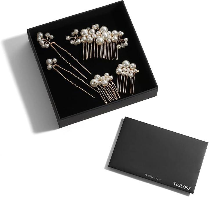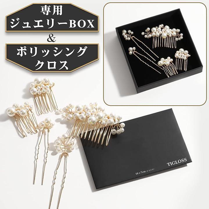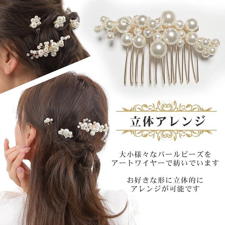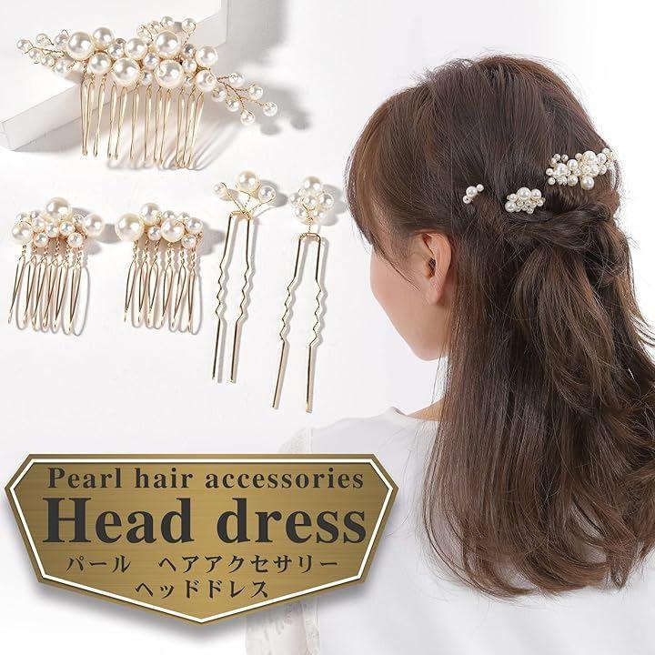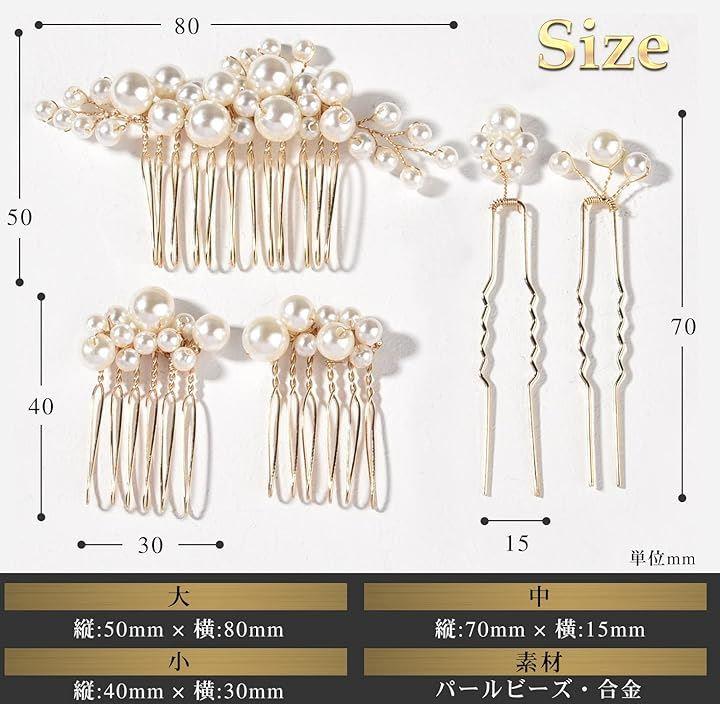 5点セットで髪を留めながらもサイズ違いのパールを散りばめれます。