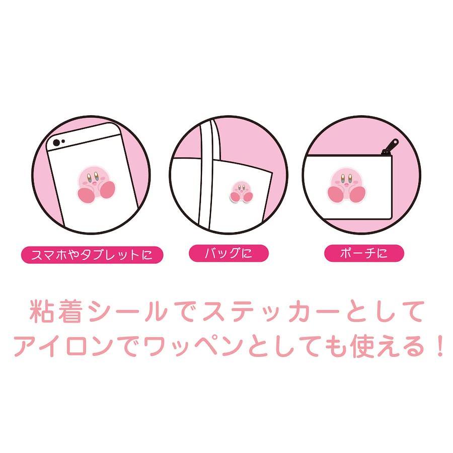 星のカービィのモコモコ刺繍ステッカー。粘着シールでステッカーとして、アイロンでワッペンとしても使えます。