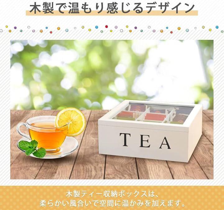 「木製で温もり感じるデザイン」 木製ティー収納ボックスは、柔らかい風合いで空間に温かみを加えます。