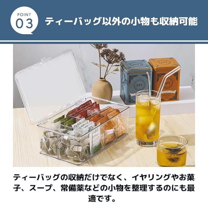 「ティーバッグ以外の小物も収納可能」ティーバッグの収納だけでなく、イヤリングやお菓子、スープ、常備薬などの小物を整理するのにも最適です。