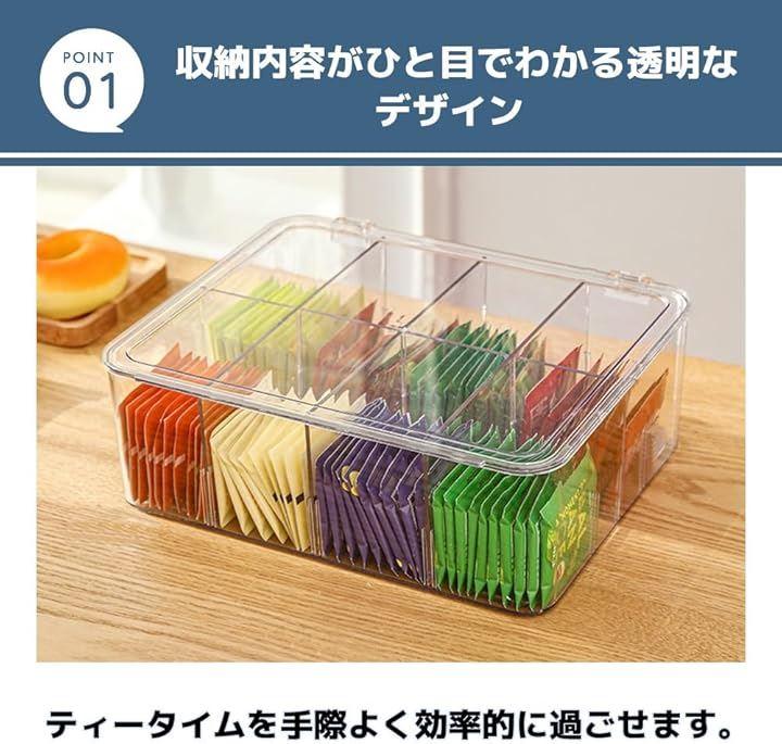 「収納内容がひと目でわかる透明なデザイン」このティーバッグホルダーは、高品質のアクリルを使用しており、透明で耐久性に優れています。