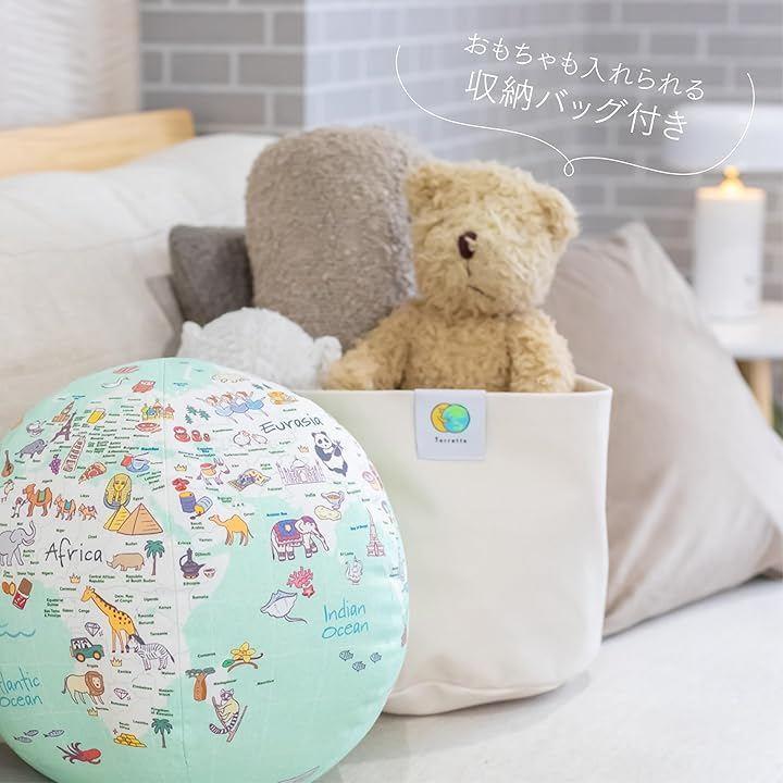ぎゅっと抱きしめられる 柔らかい地球儀“terrette” 綿100%の生地に、ふんわり柔らかい綿を入れました。